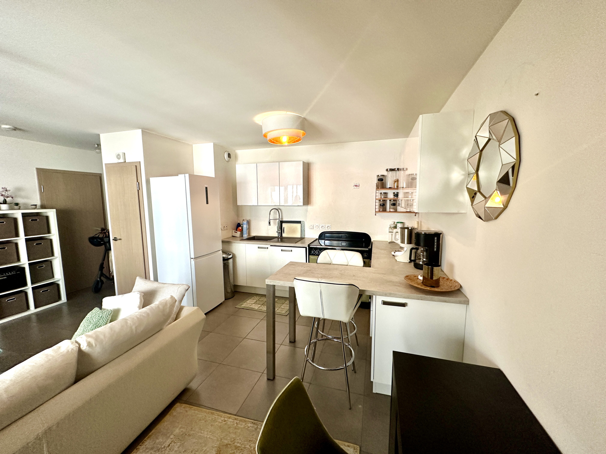 EXCLUSIVITÉ NG IMMO ,au pied du Tram , Dans résidence récente sécurisée de standing, très joli appartement de type 2 de 49 m2 offrant hall d'entrée avec rangements desservant cuisine équipée ouverte sur espace de vie avec accès bowwindow, chambre avec salle de douche attenante, dressing, , wc séparé avec cellier , une cave et un garage en sous sol complètent ce bien.