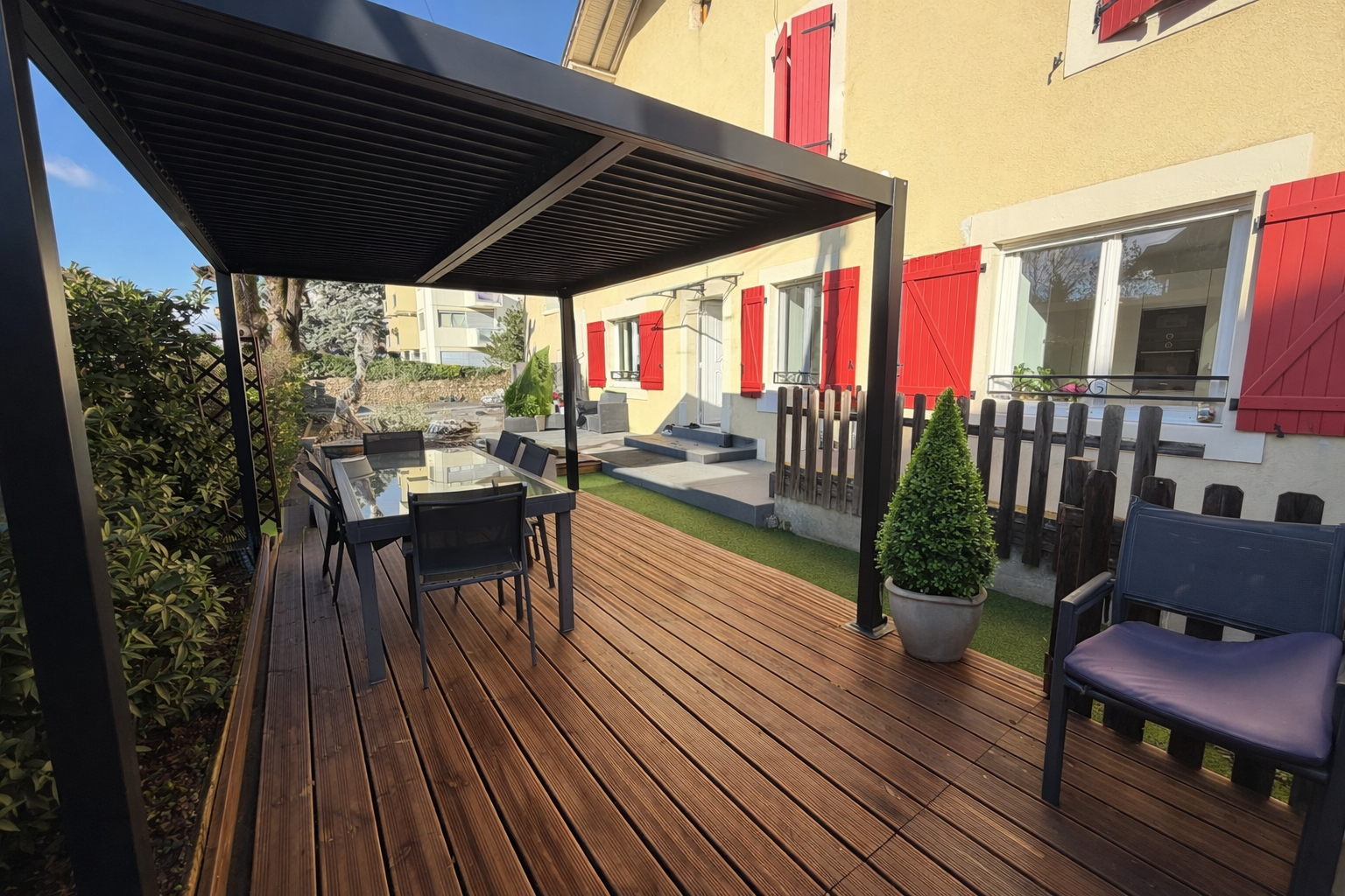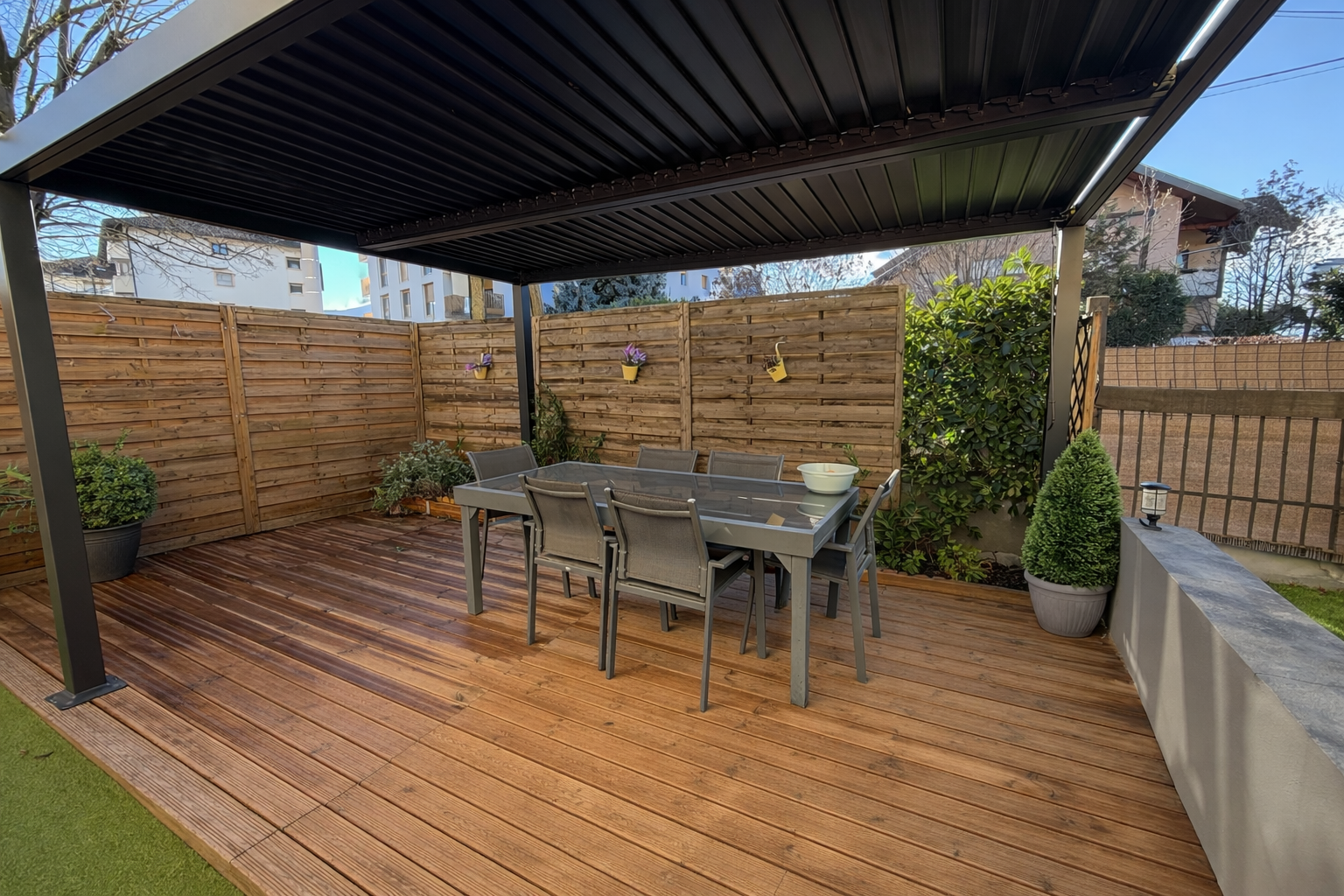 À l’extérieur, une magnifique terrasse vient prolonger l’espace de vie, offrant un véritable lieu de détente.