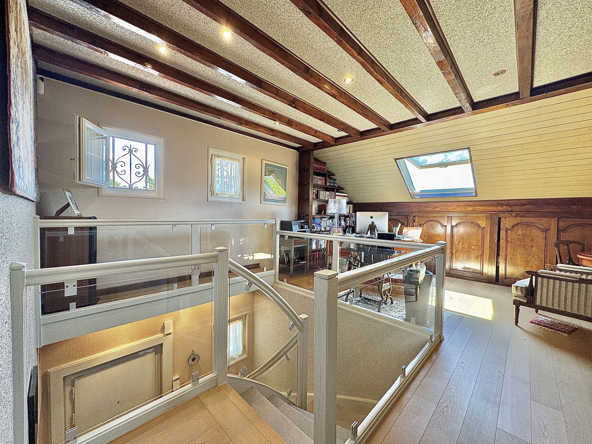 - À l'étage : • Un magnifique bureau ouvert • Deux chambres, salle de bain, WC indépendant