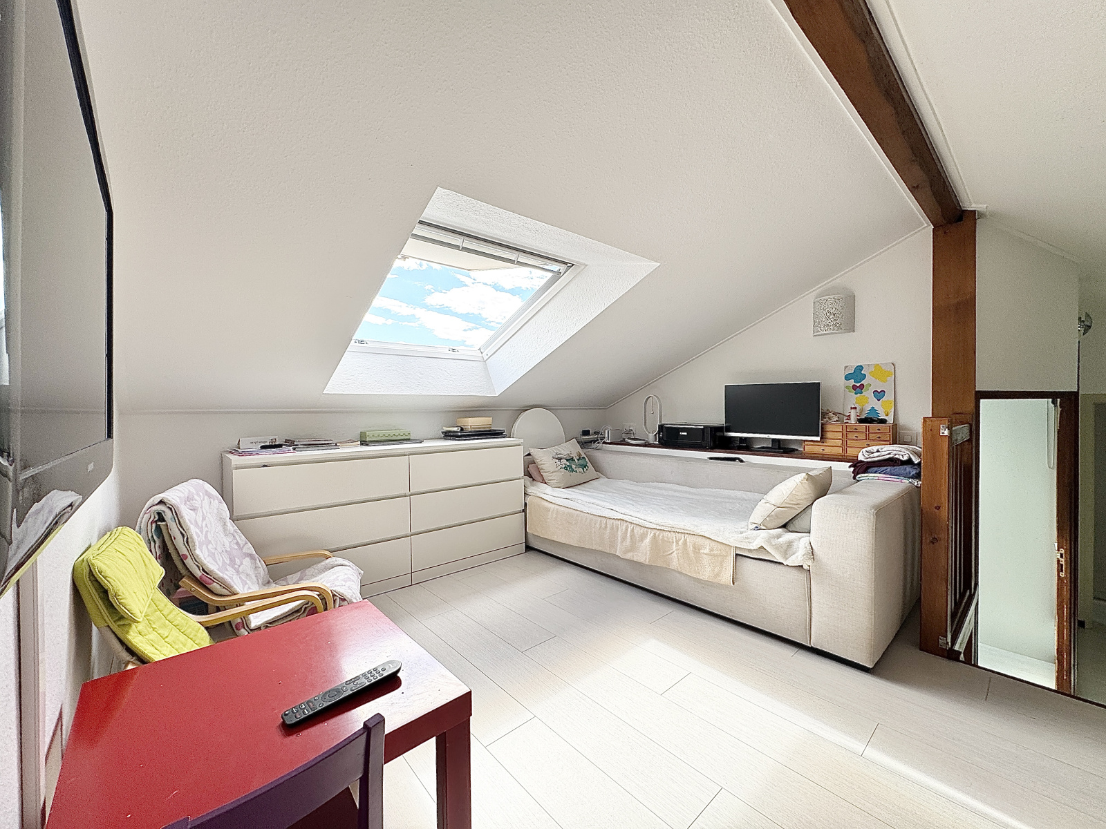 NG IMMOBILIER EN EXCLUSIVITÉ !! Pratiquement au pied des Voirons, dans un vrai havre de paix, venez découvrir ce magnifique appartement 4 pièces en duplex entièrement refait à neuf de 89m2 loi utiles et 73m2 loi carrez offrant de très belles prestations. Au cœur de Saint Cergues, dans une petite copropriété gérée par un syndic bénévole, venez découvrir cet appartement au dernier étage. Il se compose au rez d'une cuisine ouverte neuve entièrement équipée et ouverte sur la salle à manger, avec une ouverture sur la terrasse exposée PLEIN SUD/ VUE MONTAGNES et d'une salle de bains et WC séparés. À l'étage un coin salon et trois chambres. Cet appartement atypique vous séduira par ces belles poutres apparentes, beaucoup de rangements, cette belle luminosité intérieure et la vue sur les voirons !! Coin reposant au cœur du village. En complément de cet appartement, une cave et la possibilité d'acquérir un garage en supplément de 16m2. Aucun travaux à prévoir et faibles charges de copropriété !! 259€/garniture. A moins de 2min à pied des petits commerçants ( BOULANGERIE/ BOUCHERIE/ CASINO..) et du centre de Saint-Cergues. À venir découvrir tout de suite, vous ne serez pas déçus par la visite dans ce petit village de campagne !! Coup de cœur garanti !! Pour bientôt le nouveau collège à moins de 5min en voiture!!