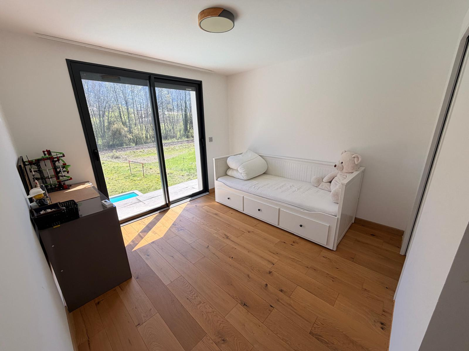 Cette propriété séduit par son architecture contemporaine, ses volumes équilibrés et sa qualité de vie, à proximité immédiate de la frontière genevoise.