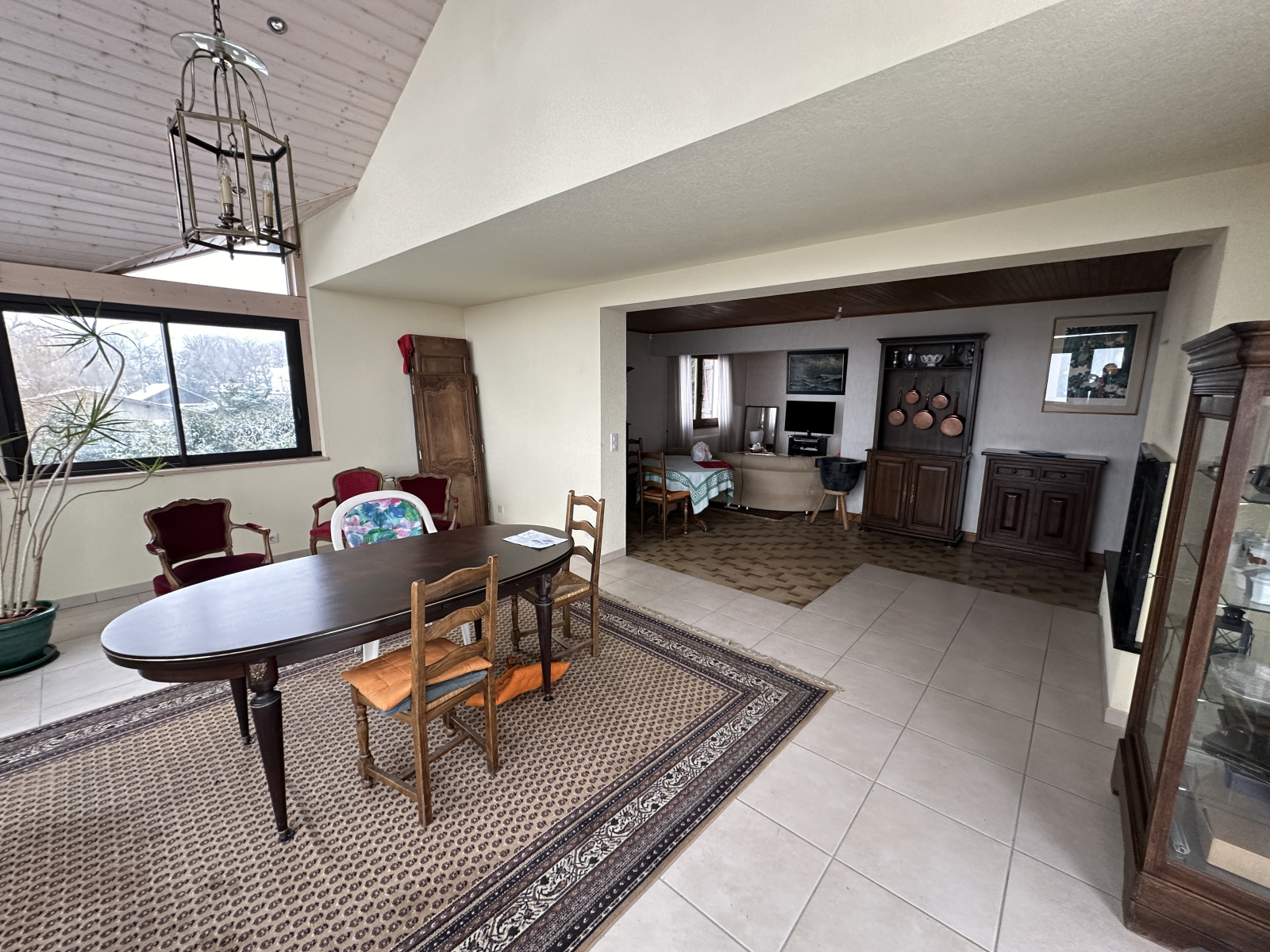 Celle-ci possède un terrain de 2024m2, le bien est constitué d'un hall d'entrée, d'une cuisine équipée et séparée, d'une pièce de vie spacieuse, double salon, salle à manger et veranda exposé Ouest.