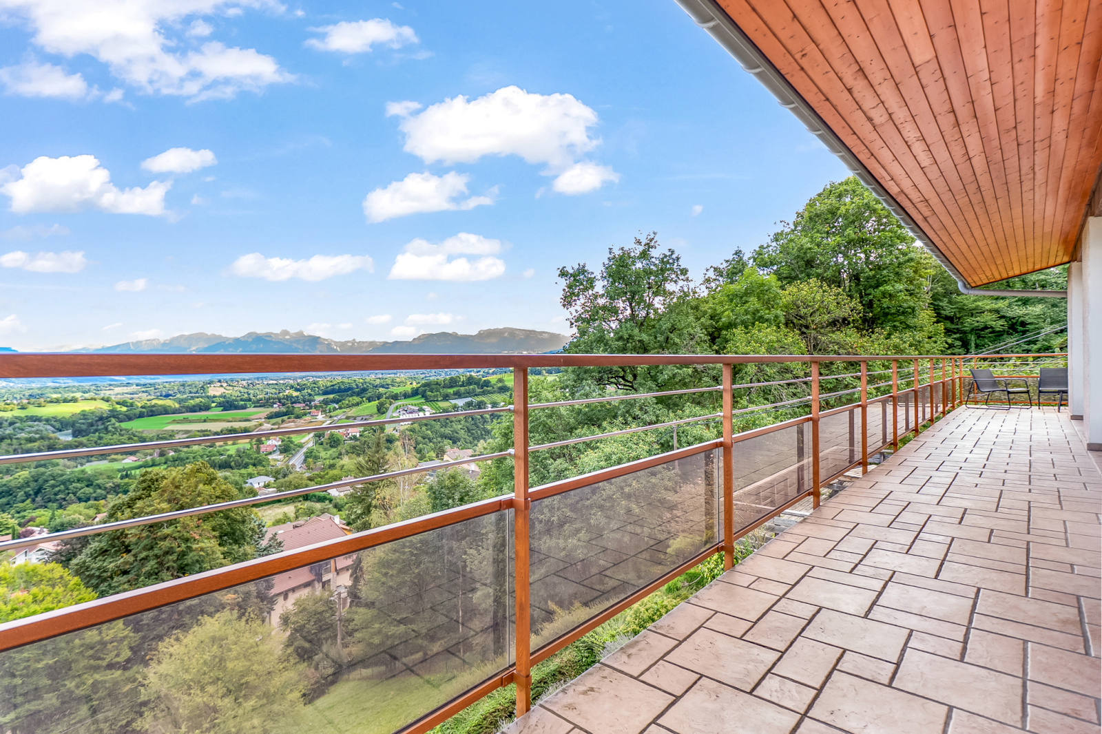 NOUVEAU - Située dans la commune de Monnetier-Mornex, à quelques minutes de la douane pour Genève, cette maison d’architecte de 255 m² profite d’un environnement calme et verdoyant, tout en offrant une vue imprenable sur la chaîne du Mont-Blanc.