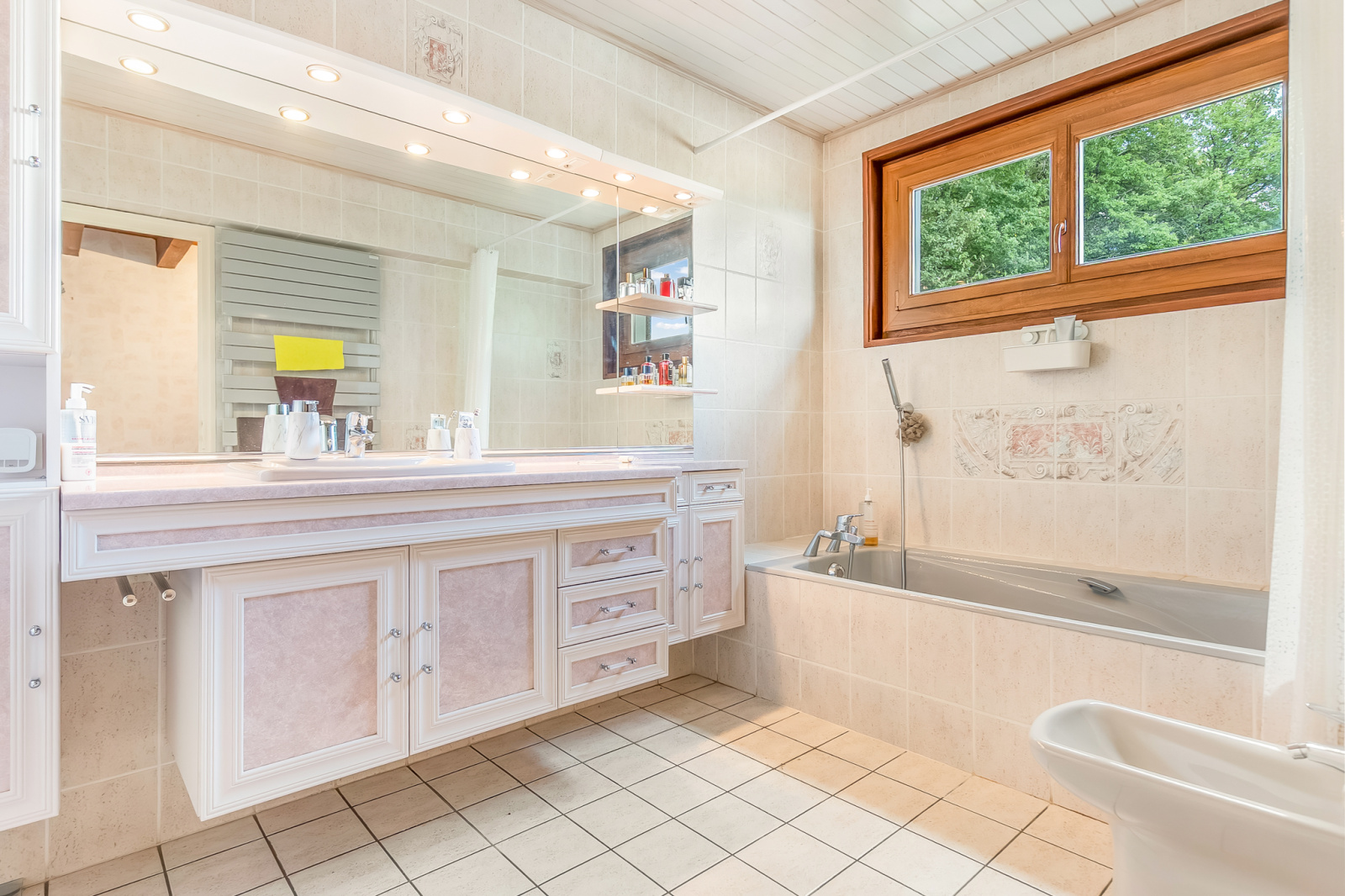 Au rez inférieur, l’espace nuit se compose de quatre chambres, une salle d’eau avec WC, ainsi qu’une cave à vin, une buanderie et une chaufferie comprenant une pompe à chaleur récente.