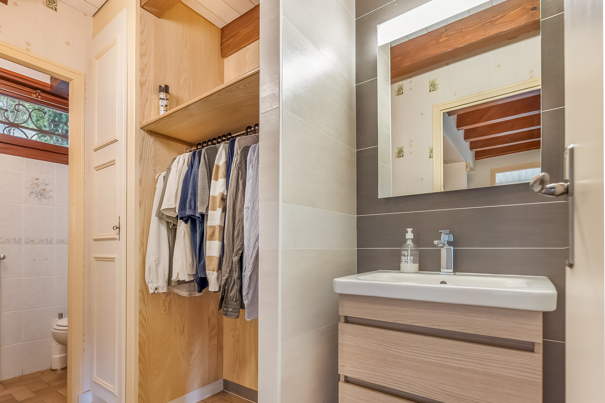 Au rez supérieur, un bureau complète l'agencement ainsi qu'un accès au garage de 30 m² donnant sur la cour extérieure.