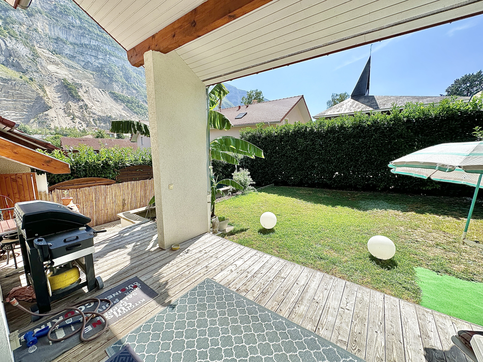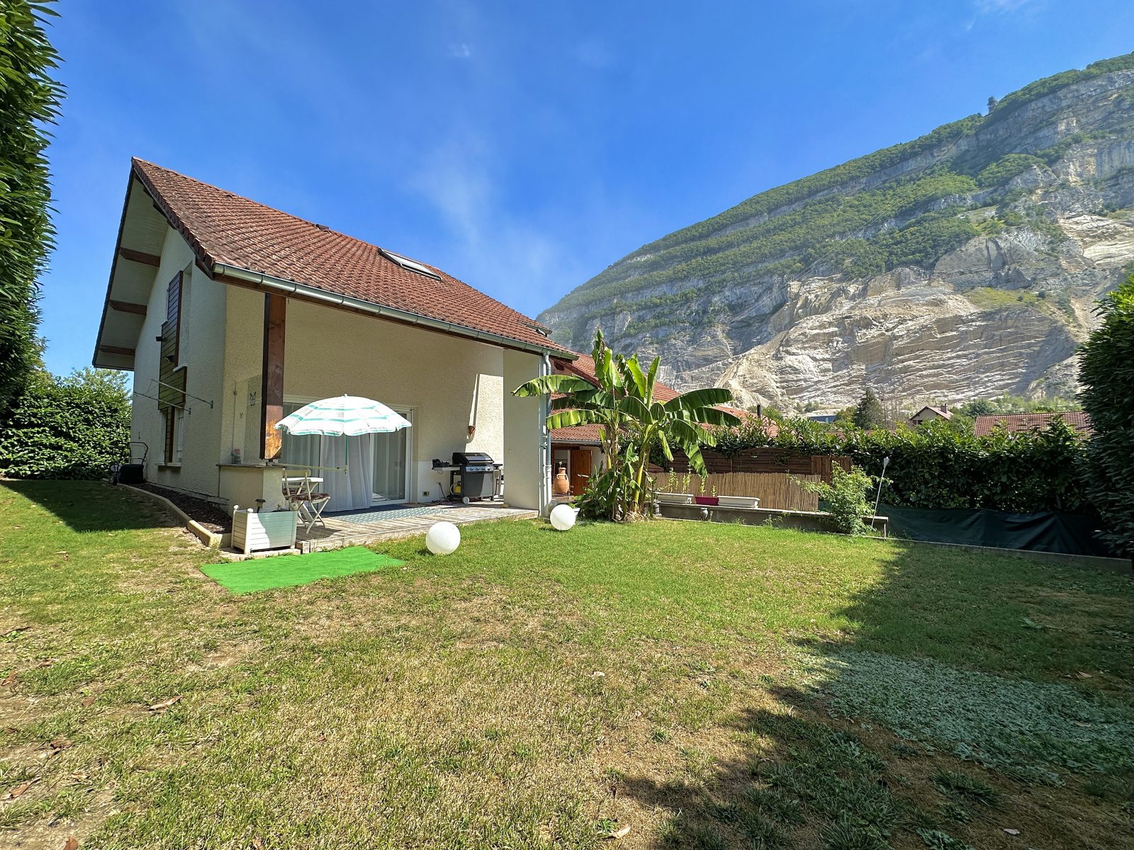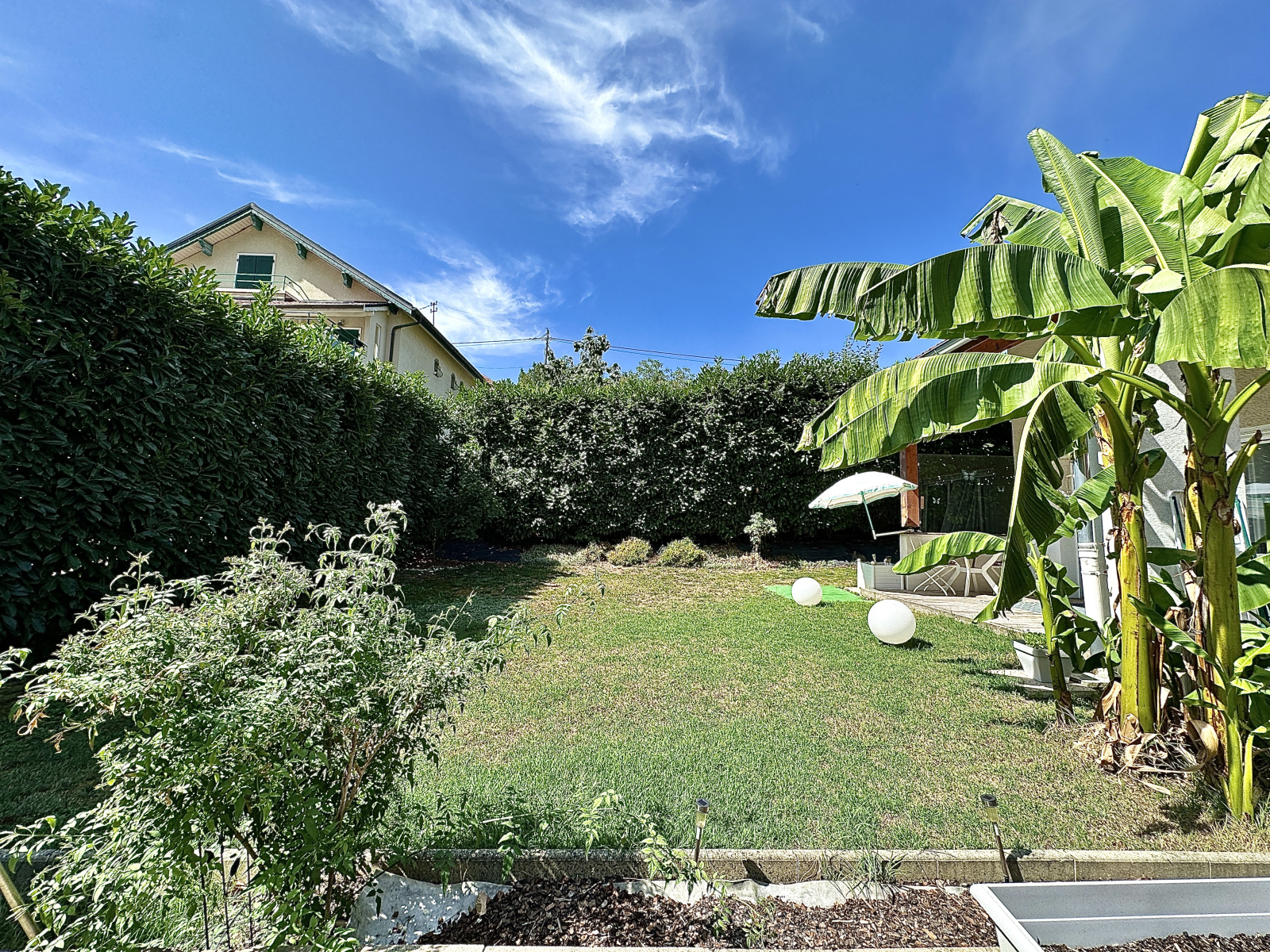 •Un Accès direct à une terrasse et à un spacieux jardin exposé sud-ouest avec une vue imprenable sur le Salève.