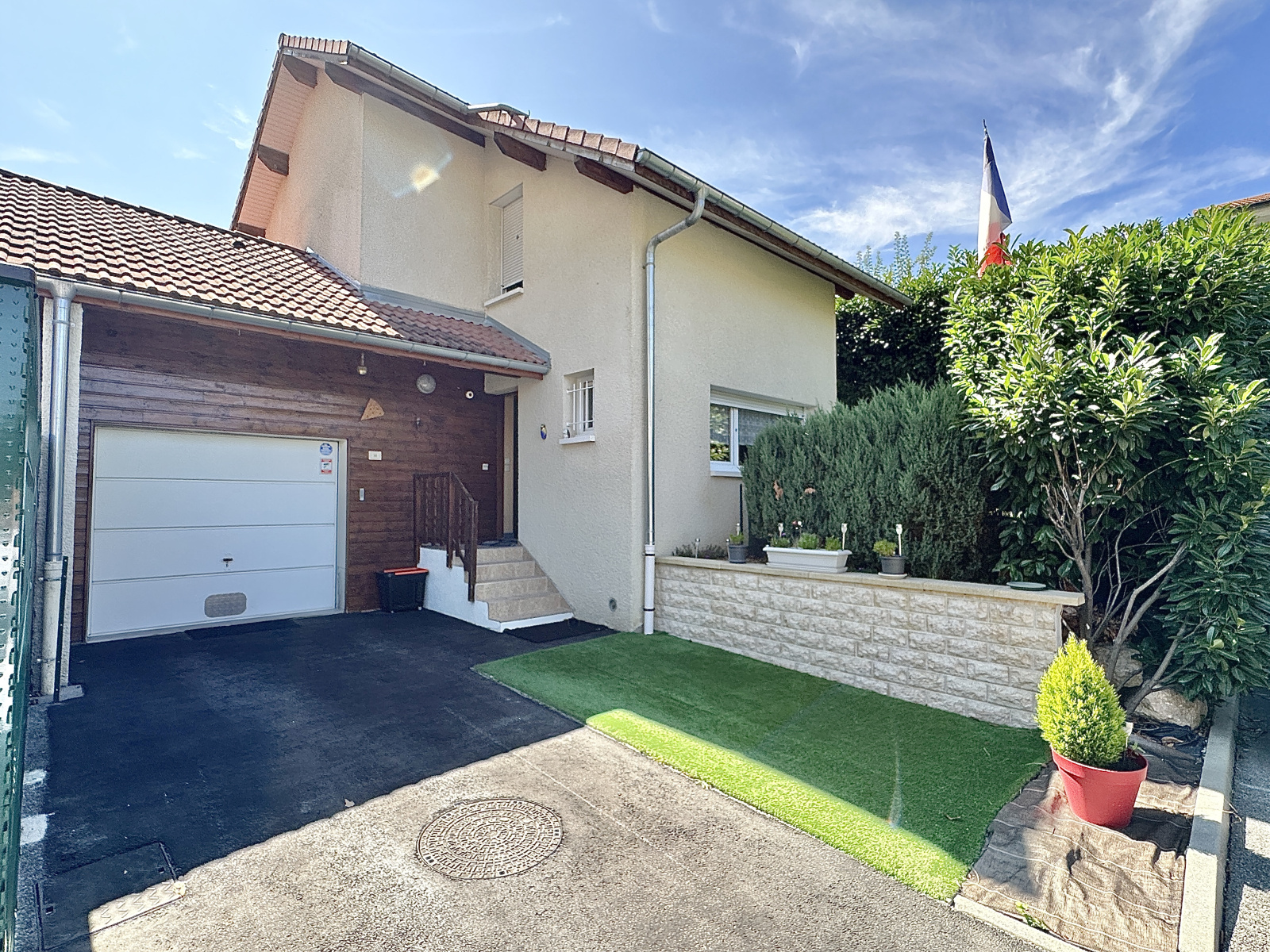 NG IMMO EXCLUSIVITE - Découvrez cette charmante maison mitoyenne par le garage de 82m2 utiles et 77m2 carrez, située dans un cadre paisible et pratique,au pied de la douane de Veyrier pour Genève. Parfaitement adaptée à une vie familiale ou à des travailleurs transfrontaliers, cette maison se trouve dans une impasse, offrant tranquillité et confort.