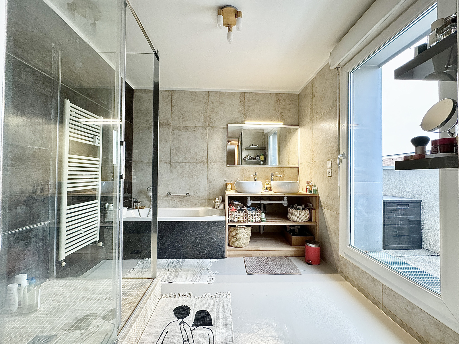EXCLUSIVITE NG IMMO - NOUVEAUTÉ ANNEMASSE - Vous êtes à la recherche d'un appartement 3 pièces entièrement rénové avec goût à moins de 5 minutes à pied du centre de la commune d'Annemasse! Cet appartement se situe au dernier étage d'une copropriété récente de 2010. Venez découvrir ce magnifique appartement 4 pièces transformé en 3 pièces de 86m2 habitables.Vous disposez de deux chambres dont une suite parentale avec dressing et une belle salle d'eau à l'italienne avec une baignoire et wc séparés,d'une cuisine entièrement équipée et ouverte sur le séjour avec accès terrasse de 10m2.Exposition Sud-Ouest et vue Mont Blanc et Salève. En annexe la possibilité d'acquérir un grand double garage fermé de 24m2. Situé dans un coin calme en hauteur offrant une vue panoramique sur les montagnes.