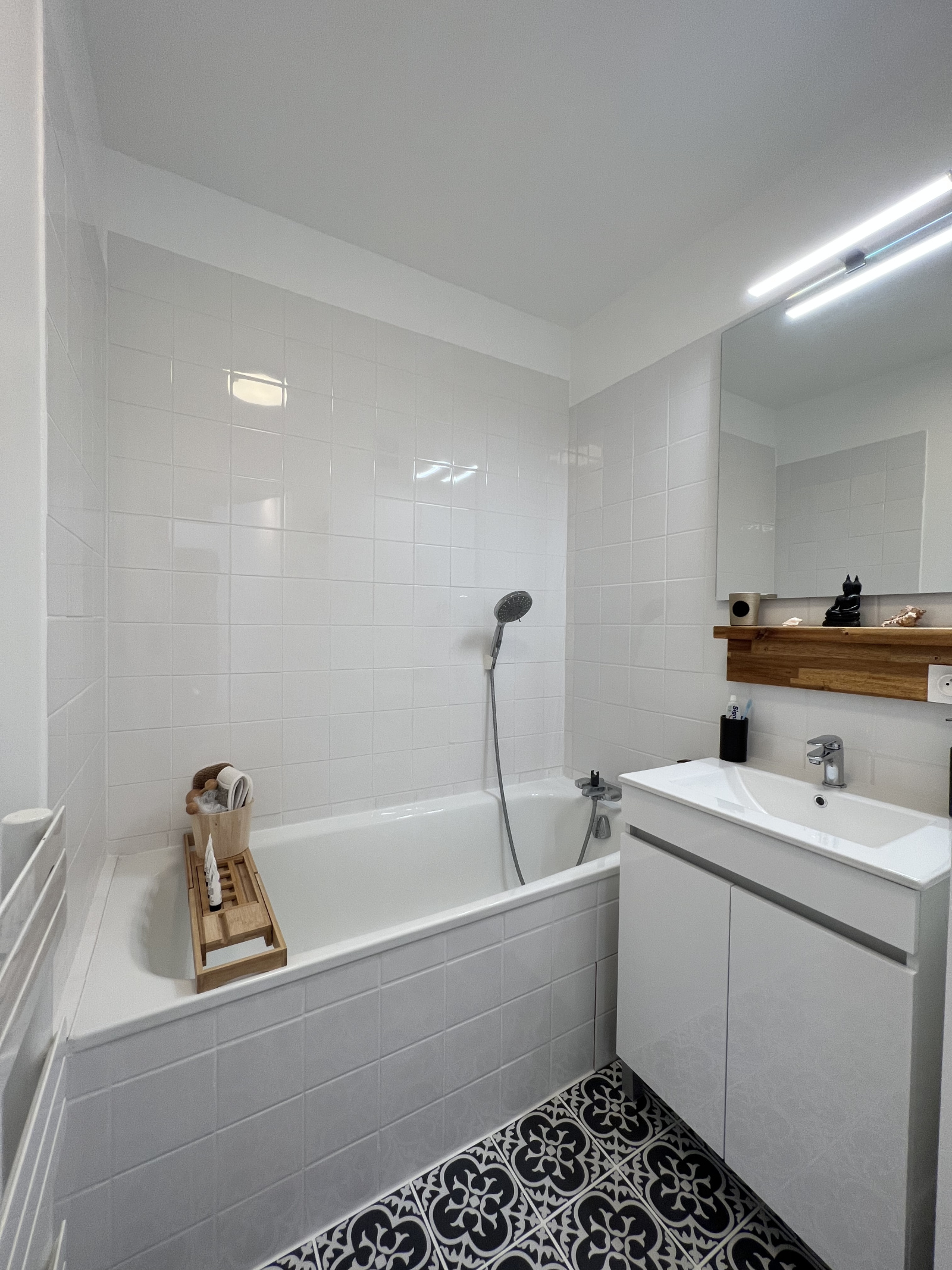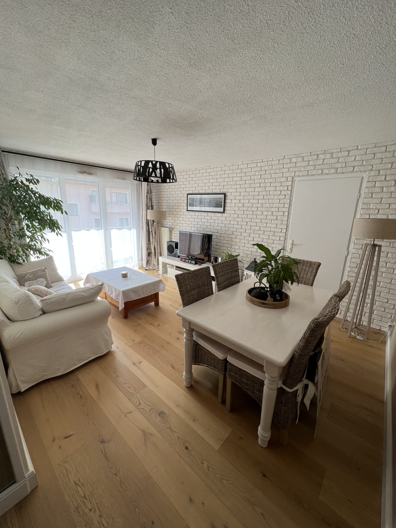 Appartement entièrement rénové avec des matériaux de qualités, situé dans une résidence bien entretenue de 1994, offrant hall d'entrée desservant cuisine séparée entièrement aménagée et équipée, séjour de 20 m2 avec accès balcon. Coin nuit disposant de 3 chambres dont une suite parentale, salle de bains entierement équipée et wc séparé. L'appartement est équipé de nombreux de rangements.