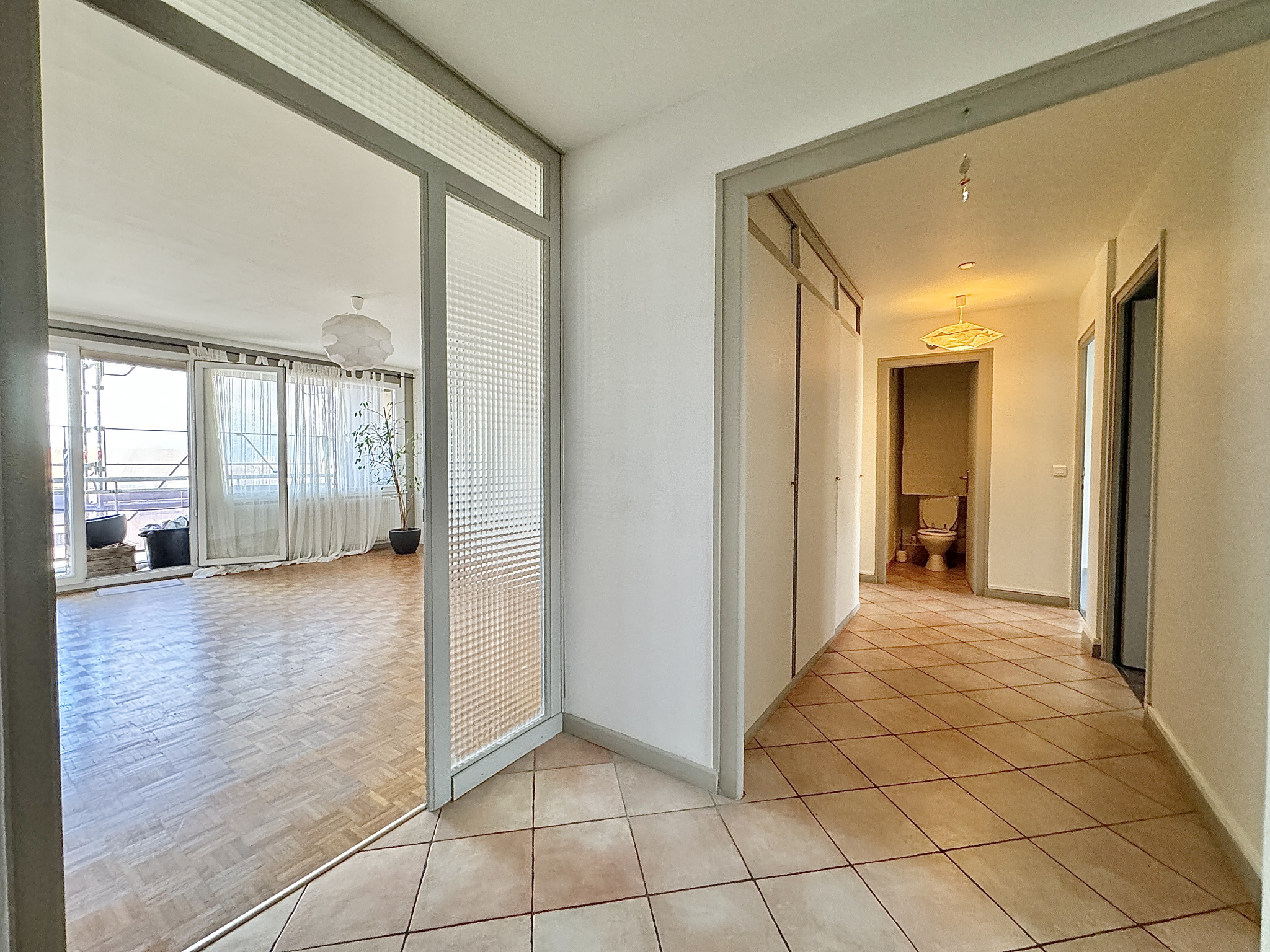 Idéalement situé au centre ville d'Annemasse, découvrez cet appartement spacieux de 96,82m², au 5ème étage d'un immeuble récemment ravalé et entièrement isolé, offrant confort et prestations de qualité, chaudière neuve en 2023. DPE EN C !! La copropriété a voté une réflexion intégrale et complète du bâtiment !! Toutes les charges sont comprises.