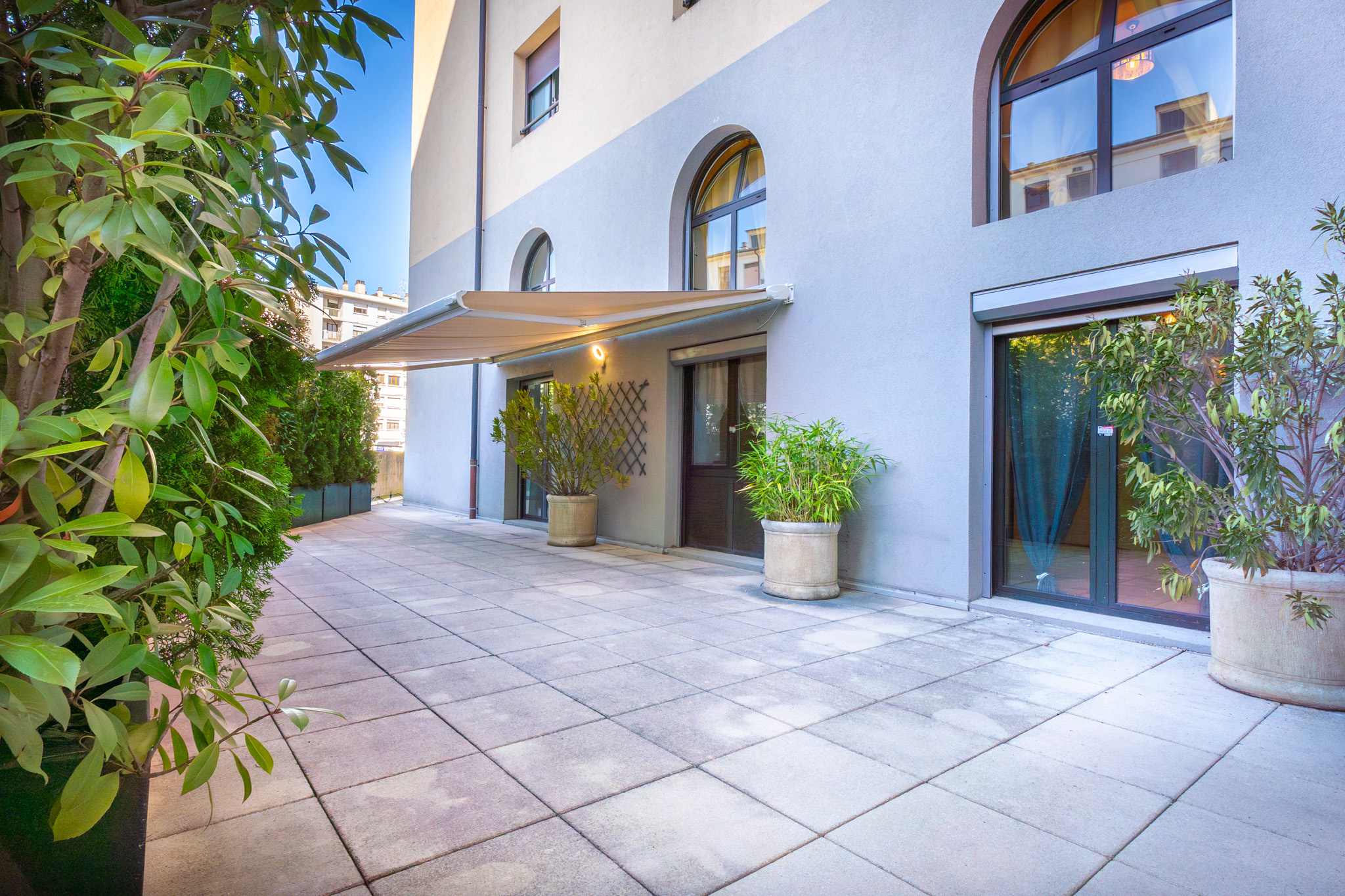 Au rez-de-chaussée, un hall d'entrée avec rangements dessert un vaste salon lumineux avec plus de 4 mètres d'hauteur sous plafond, et une cuisine entièrement équipée.Ce niveau comprend également une chambre avec salle de douche attenante ainsi qu'un WC indépendant avec lave-mains.La Terrasse, qui fait le tour complet du duplex, offre un espace extérieur exceptionnel accessible depuis le salon et la chambre, idéal pour profiter pleinement des beaux jours. À l'étage, l'espace de nuit se compose d'une chambre principale avec dressing, d'une seconde chambre spacieuse avec rangements dans le couloir, et une salle de bains principale avec douche et WC.Idéalement situé en plein centre d'Annemasse, à proximité immédiate des commerces et transports, ce duplex est une opportunité unique à ne pas manquer.