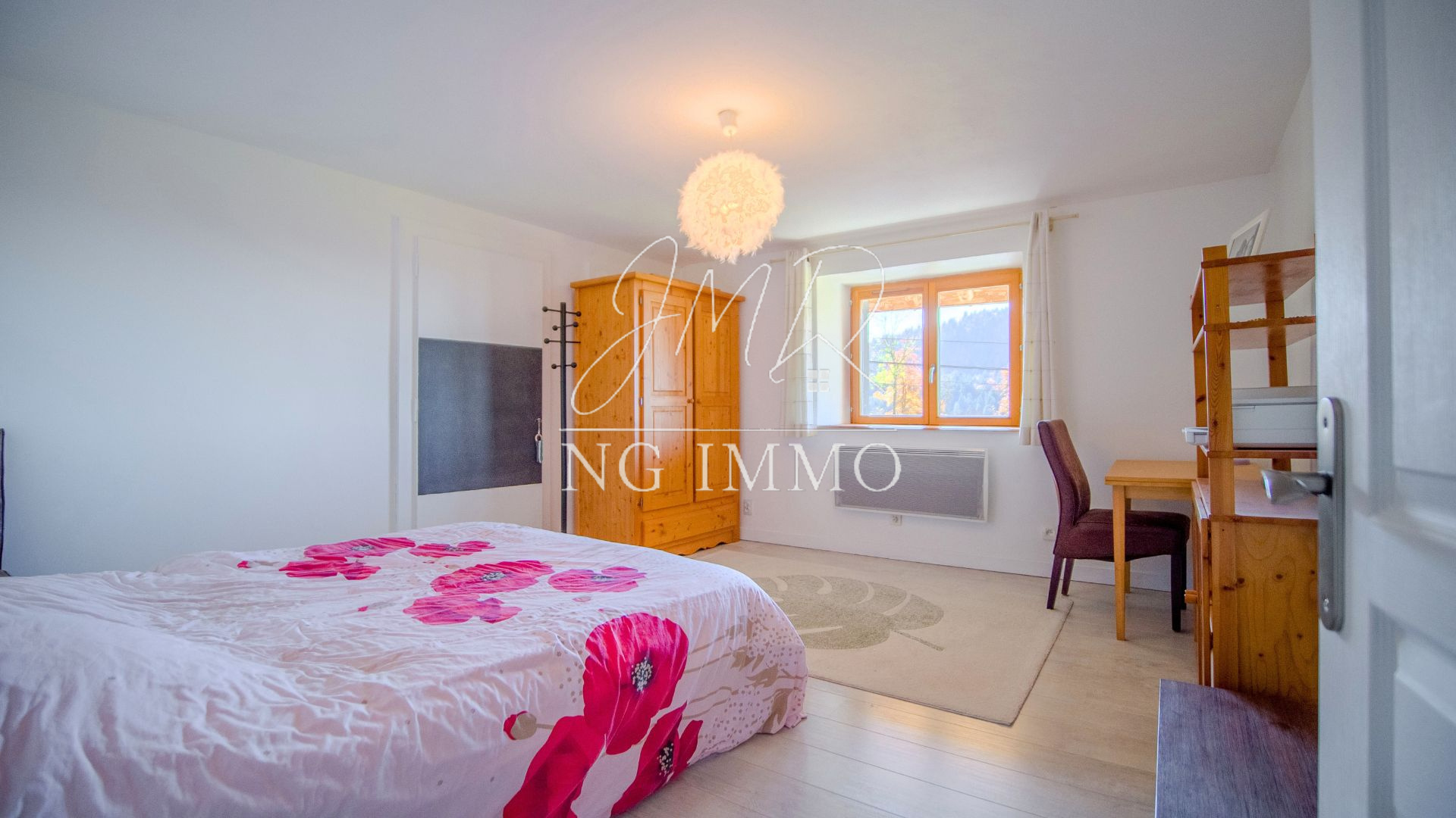 À l’intérieur, la rénovation soignée met en valeur les volumes généreux et la lumière omniprésente. Le vaste séjour avec poêle et salle à manger s’ouvre sur une cuisine conviviale, idéale pour recevoir. À l’étage, les grandes chambres aux finitions chaleureuses promettent confort et sérénité.