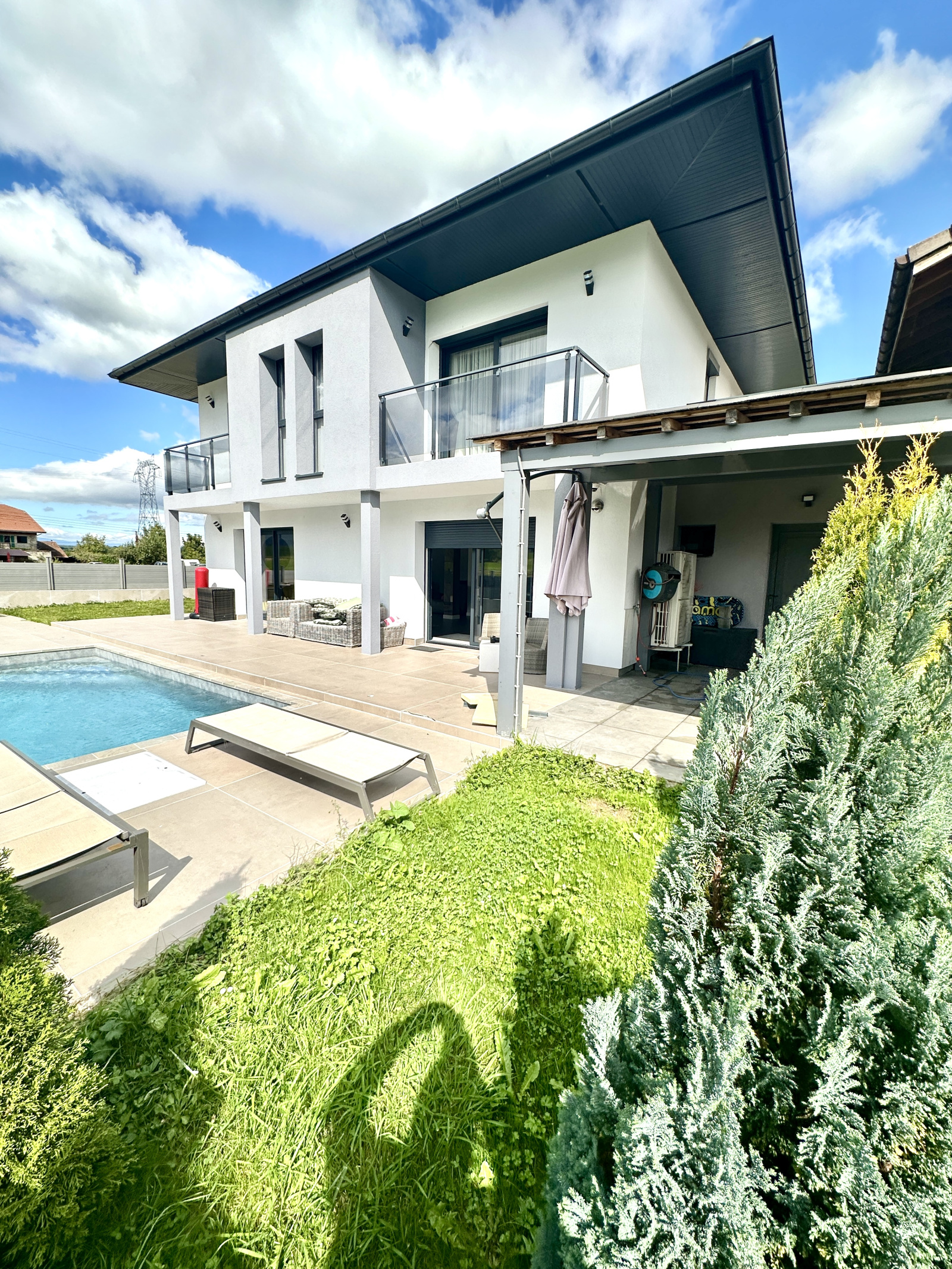 Dans la commune de Scientrier, nous vous proposons de faire l'acquisition d'une maison. Maison de 210m² composée d'un espace cuisine et 5 chambres. Avec autant de chambres, vous pourriez en réserver une à vos invités. Aspect pratique, sa salle de bain numéro 2 ajoute un petit confort non négligeable dans la vie quotidienne. Le double vitrage garantit le calme du lieu. Est conforme aux normes du label de bâtiment à basse consommation qui garantit des économies d'énergie au quotidien. Pour vivre au soleil, le bien vous propose un jardin. Jardin plutôt vaste. Construit en 2020. Le domicile est flambant neuf. Il vous fait bénéficier d'une aire de parking privative qui facilitent le stationnement et d'un garage. Prix de vente minimum : 695 000 €. Si vous êtes à la recherche d'un grand logement pour héberger toute votre tribu, venez vite voir cette propriété ! Si vous voulez planifier une visite, entrez rapidement en contact avec l'agence immobilière NG Immo - Nicolas Giraux.