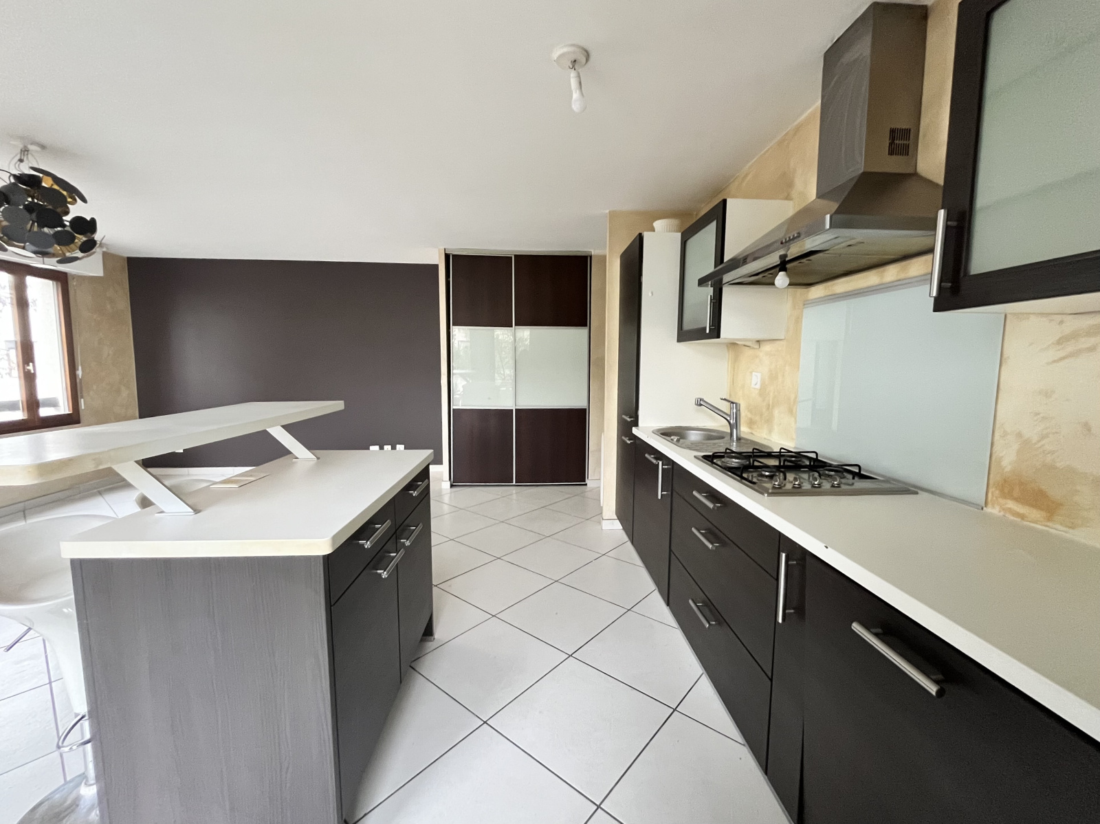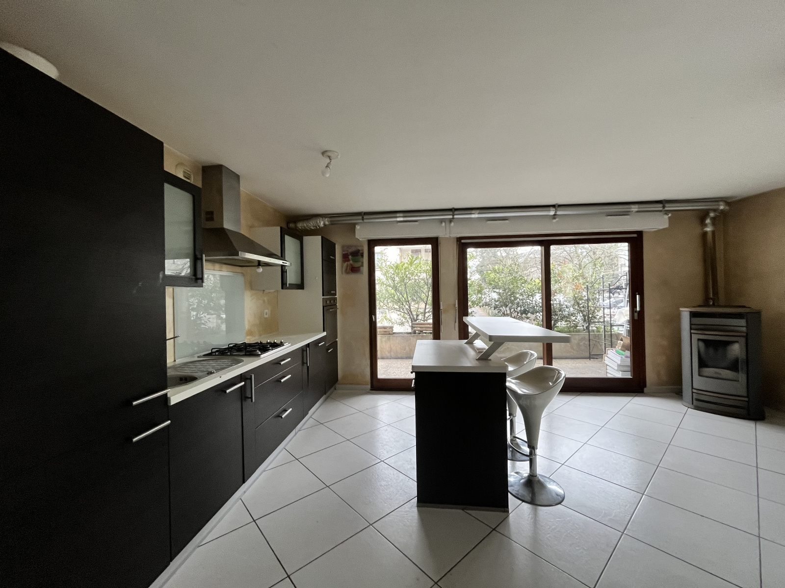 Composé d'un hall d'entrée deservant la cuisine équipée avec un ilot centrale ouverte sur le séjour/ salle à manger donnant accès à la terasse apportant une belle luminositée.