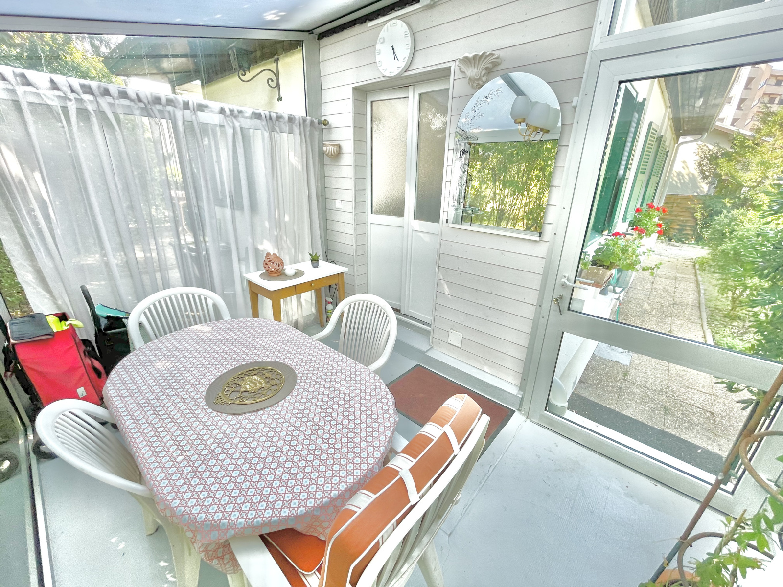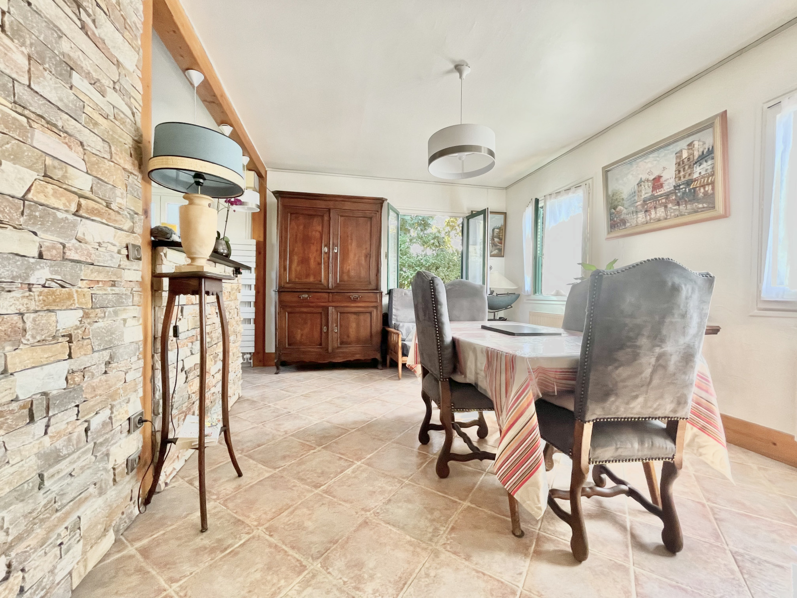 EXCLUSIVITE - NG IMMO - GAILLARD. Charmante maison construite dans les années 60. Cette maison de village traditionnelle est edifiée sur une parcelle clos et arborée de 550 m2, maison individuelle de plus de 150m2 utiles, offrant au rez-de-chaussée une cuisine entièrement équipée ouverte sur un sejour avec cheminée, accès véranda fermée, deux chambres, avec salle de bains. À l'étage se trouve deux coquettes chambres avec WC. Vous disposerez de places de stationnement. Grand garage double extérieur, avec une partie atelier. Vous êtes à la recherche d'une maison au cœur du centre de Gaillard, proche du tram (50m) et de la voie verte (150m), ainsi que des commerces ? Cette maison est faite pour vous. Contactez dès à présent Jean Marie Dunand si vous souhaitez planifier une visite.