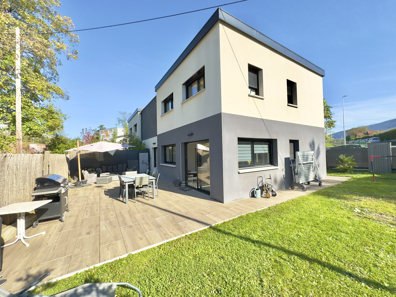 GAILLARD - EXCLUSIVITÉ - Maison contemporaine de 2019 proposant de très belle prestations , Hall d'entrée desservant espace rangements, wc visiteurs, cuisine entièrement équipée avec illot central ouverte sur espace de vie lumineux et accès extérieur, 1 chambre au rez avec grande buanderie, 3 belles chambres à l'étage dont 1 suite parentale avec balcon, salle d'eau à l'italienne principale et grand dressing. A ce bien s'ajoute un trés joli jardin clos et arboré avec un espace terrasse et détente idéal pour les moments de partages. Cette maison est vendue sans aucun travaux à prévoir. DPE EN B!!