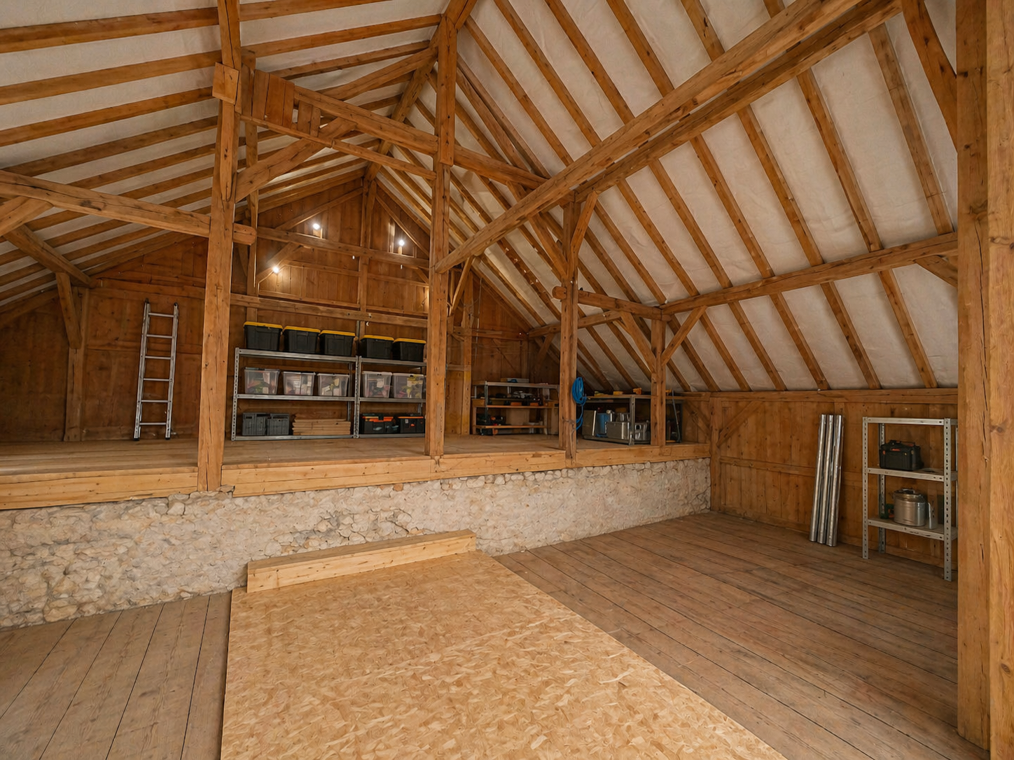 À l’étage, une grange d’environ 210 m² au sol constitue un véritable atout pour ce bien.