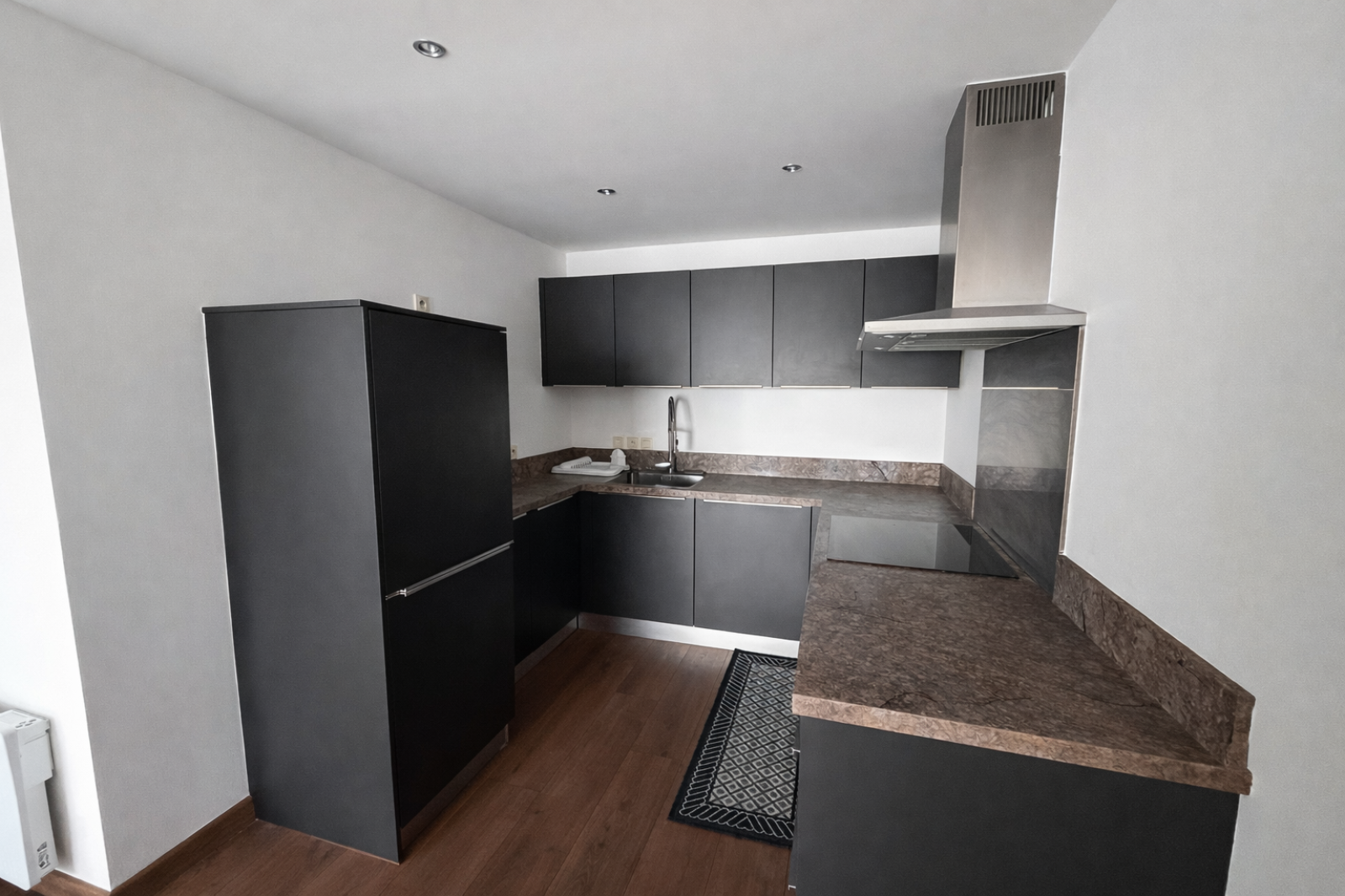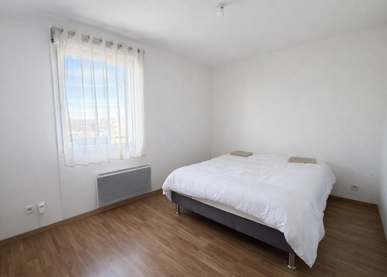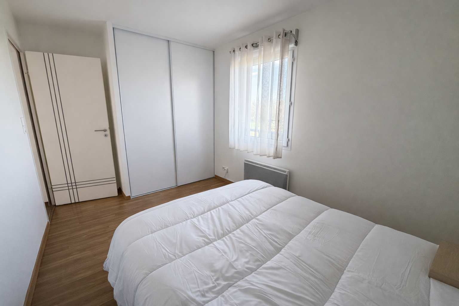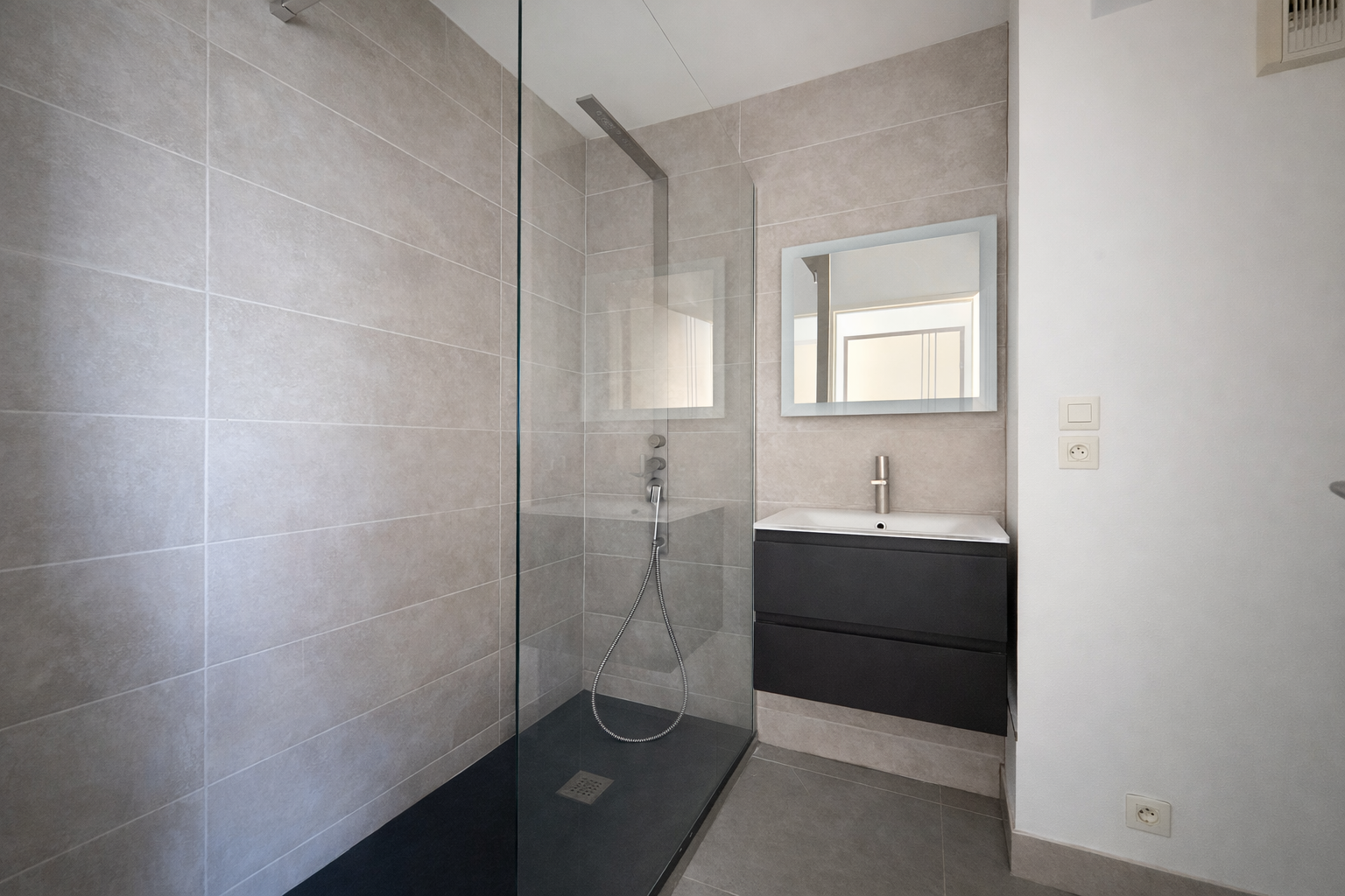 L’appartement dispose également d’une chambre confortable avec placard, d’une salle d’eau moderne avec douche à l’italienne et de WC séparés.