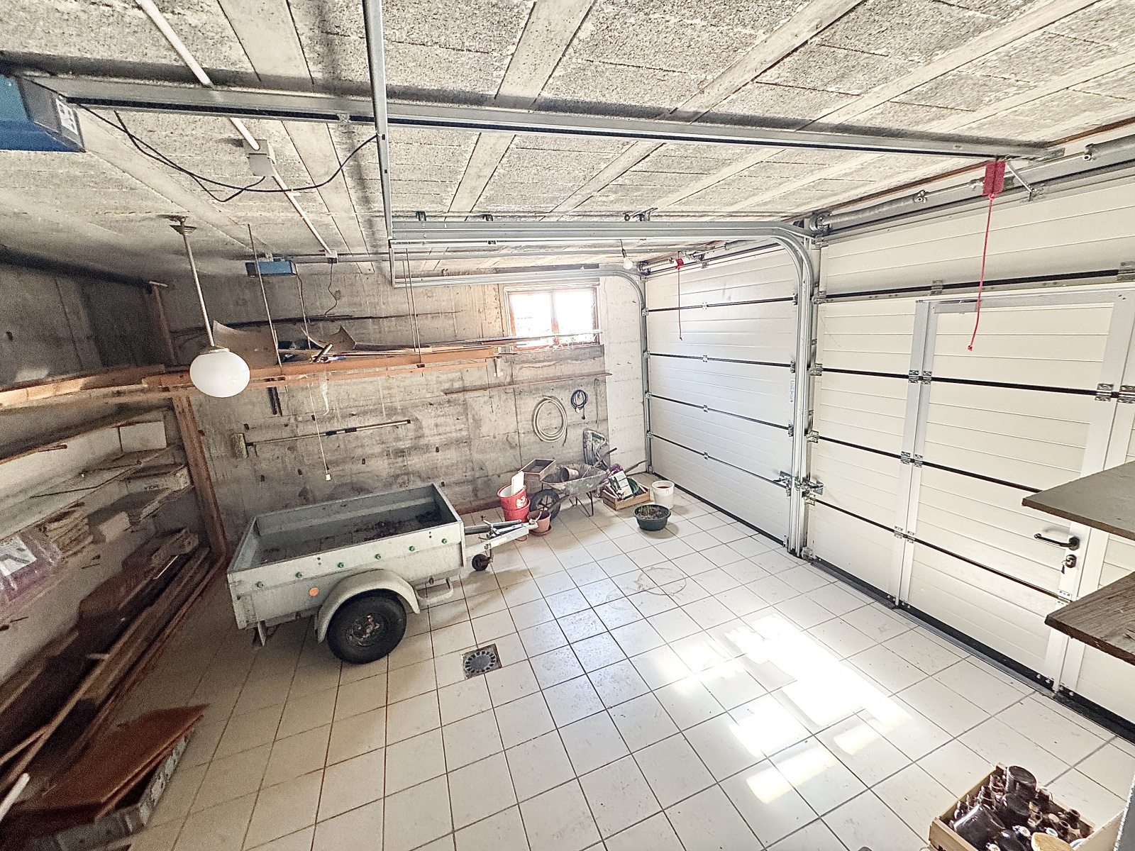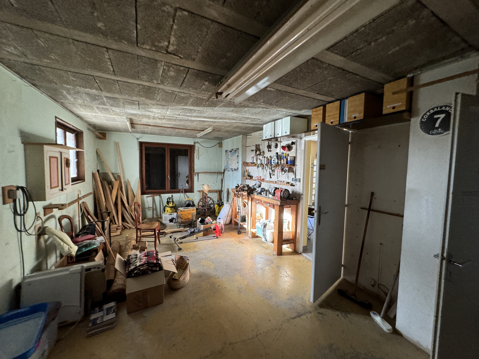 Au Rez, une entrée donnant accès à un bureau, un cellier, une cavede 16m2 authentique, un atelier de plus de 33m2 et un garage double avec porte motorisée de 29m2.
